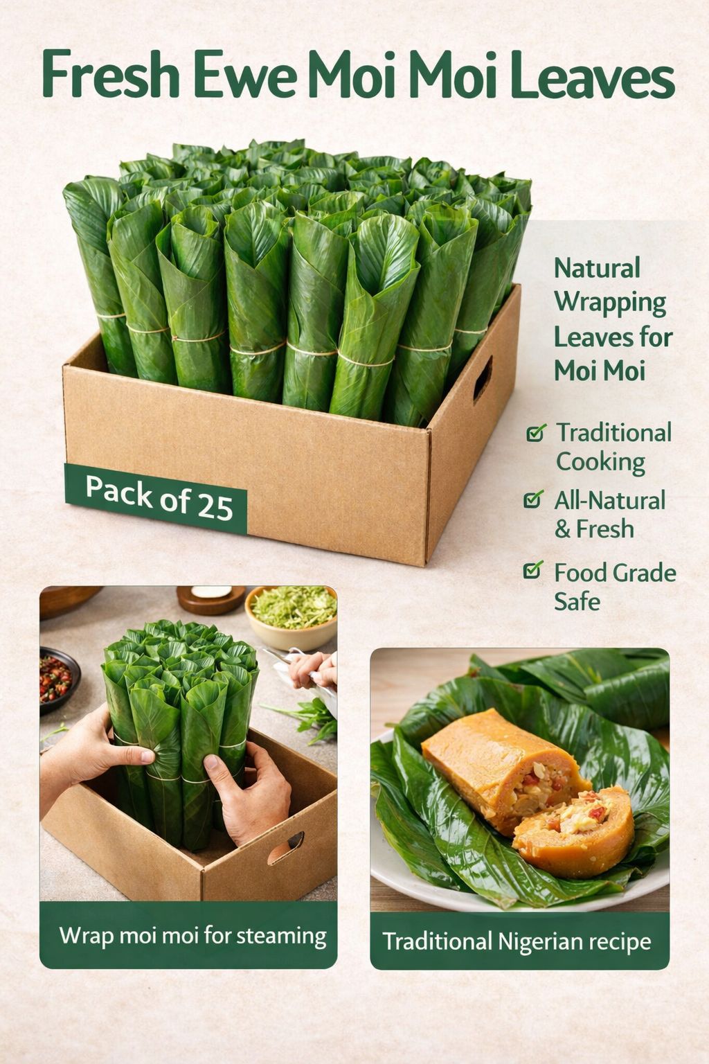 Authentic fresh ewe Moi Moi leaves (25 pack) for traditional Nigerian Moi Moi and steaming wraps — natural, aromatic and essential for classic recipes.