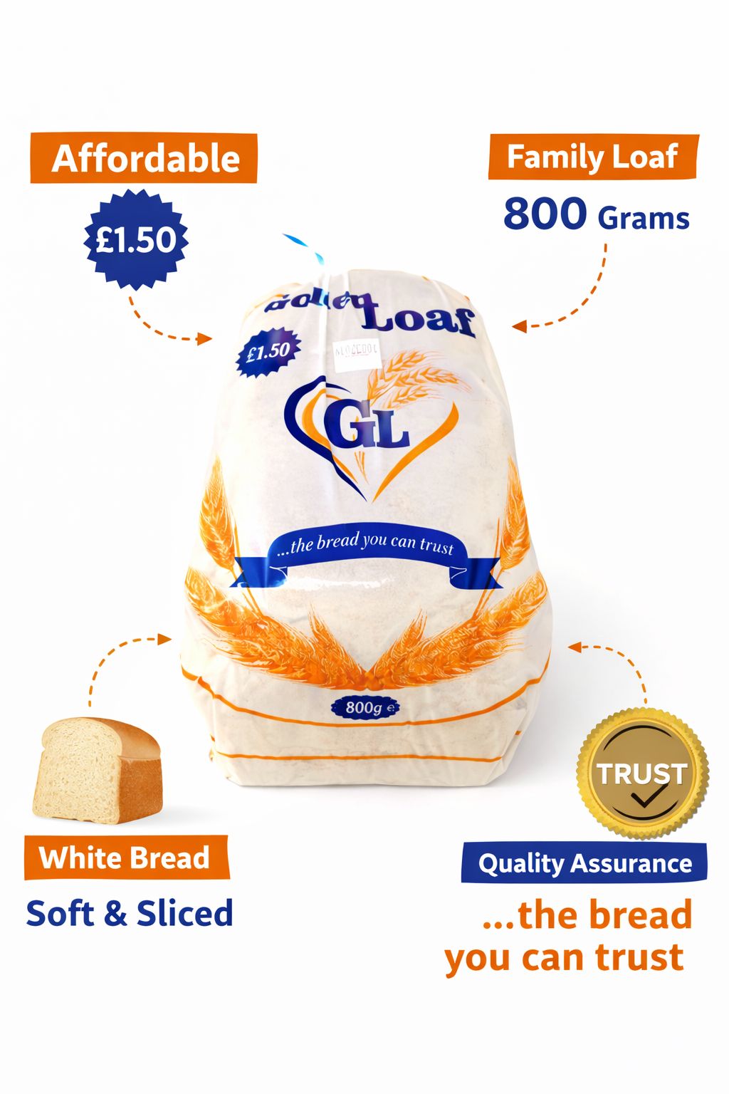 Golden Loaf Bread 800g – Soft Sliced White Bread UK