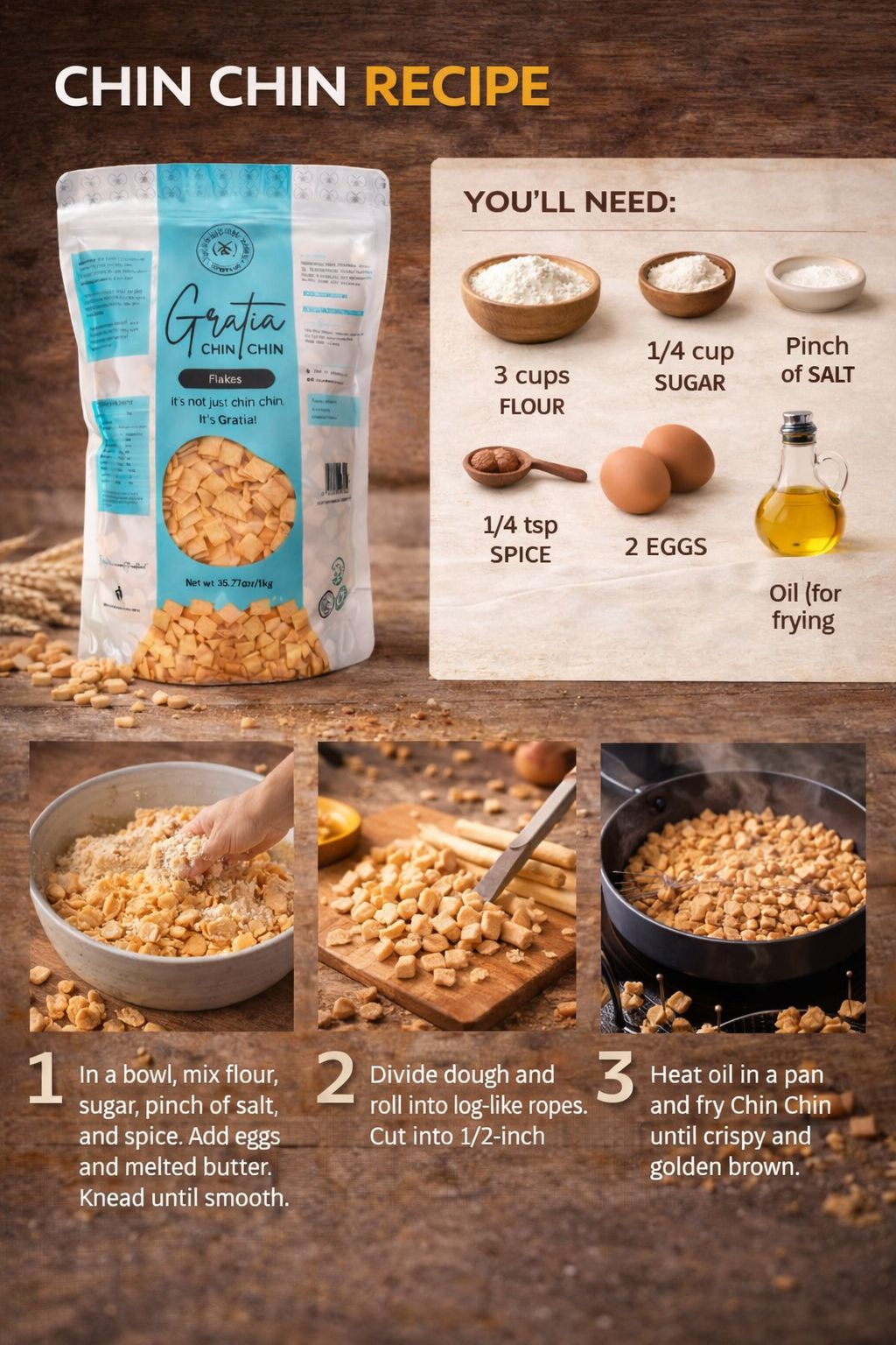 Gratia Premium Chin Chin 1kg (Ziplock) – Crunchy Nigerian Snack, Party & Catering Pack | UK